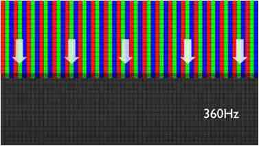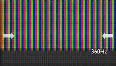 传统液晶驱动是从左到右单向进行,,,在画面更新速度愈来越愈快的情况下,,位于驱动线路末端的右下角区域,,画素的闸极来不及在短时间内获得足够电压,,无法显示出正确的颜色资讯。。